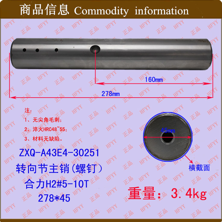 Stacking High Machine Accessories Large Kingpin Large Kingpin Steering Knuckle Master Pin A43E4-30251 H2000 H2000#5-10T