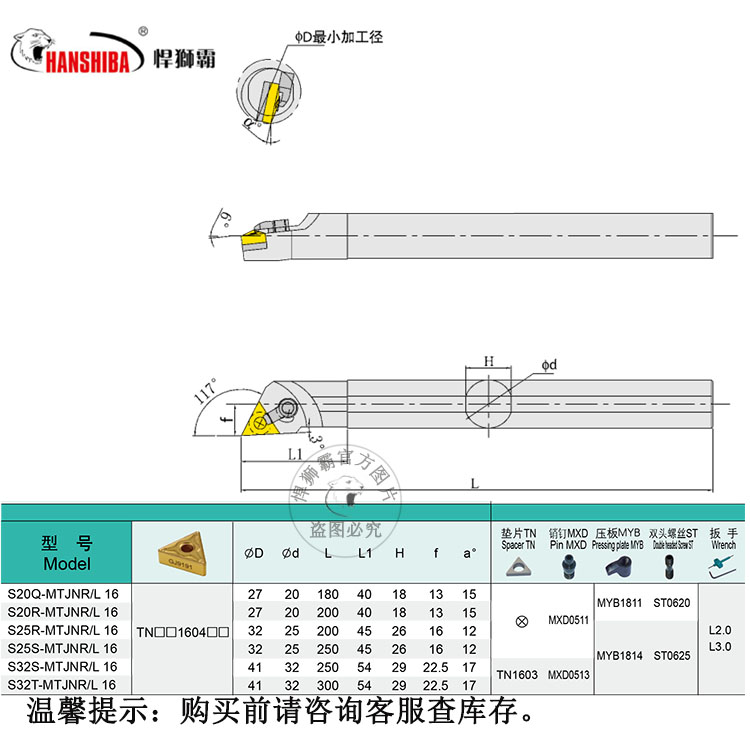Hunshiba CNC tool CNC inner hole turning tool pressure plate S32T-MTJNR MTJNL16 boring tool holder - Taobao