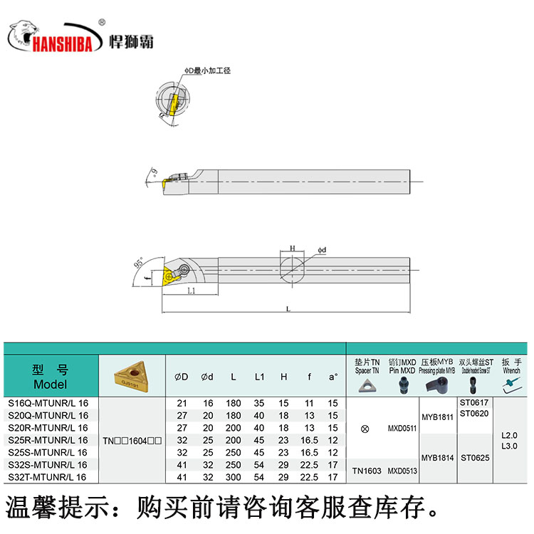 Hunshiba CNC tool CNC turning tool pressure plate inner hole turning tool MTUNR MTUNL16 boring tool rod