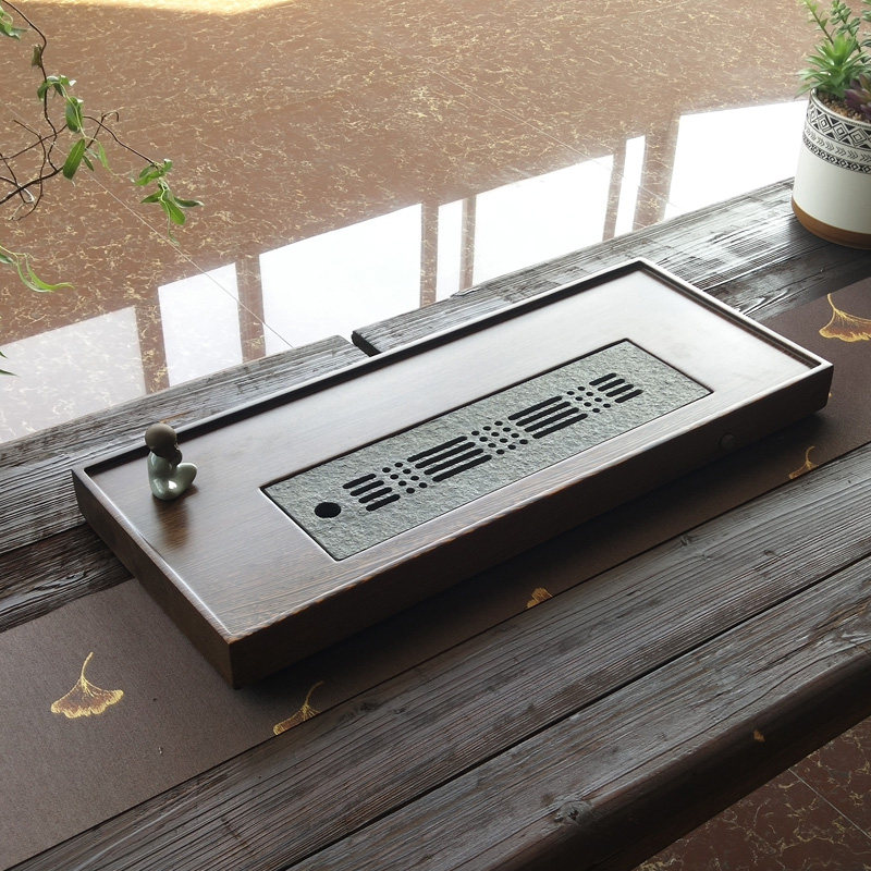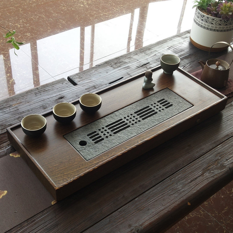 High-end solid wood tea plate chicken fin large whole drainage tea table household log log Chinese luxury tea table