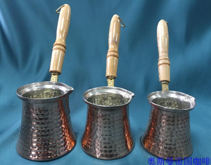 Spot imported Turkish coffee pot thickened Turkey imported handmade wooden handle copper coffee pot