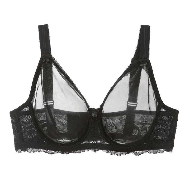 Glitter transparent bra fully transparent sexy lingerie ultra-thin anti-sag oversize sheer mesh bra with steel rims to dry quickly