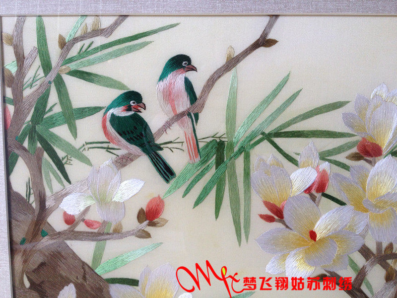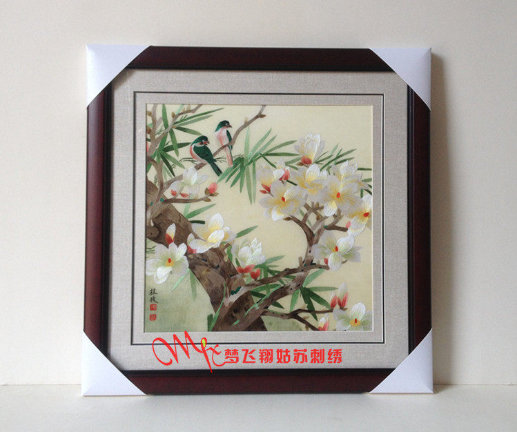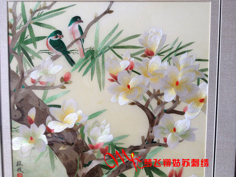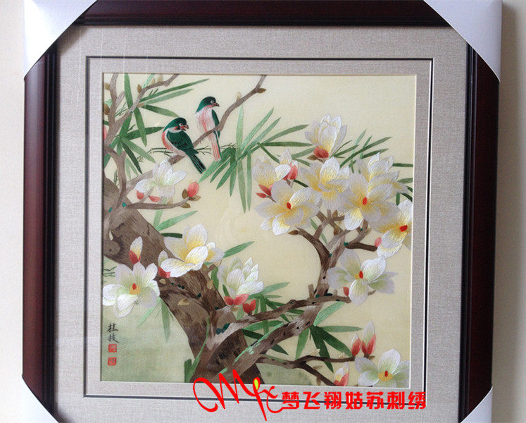 Dream flying handmade Suzhou embroidery finished product boutique embroidery magnolia flower and bird living room hanging painting embroidery bedroom porch embroidery painting
