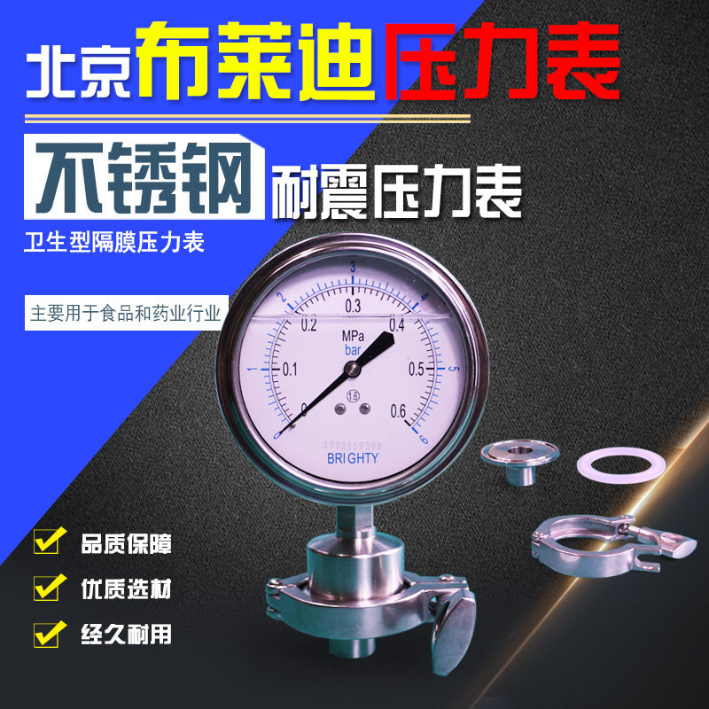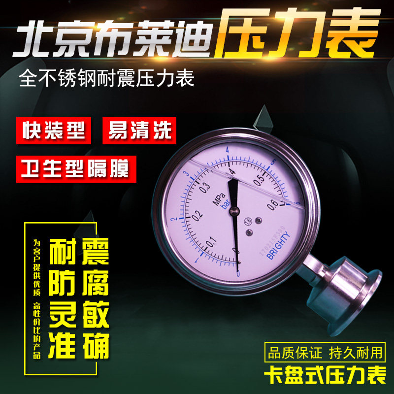 Beijing Brady Health type diaphragm shock resistant YTNP98 clip quick fit anti-corrosive high precision pressure meter spot