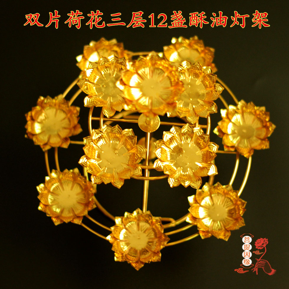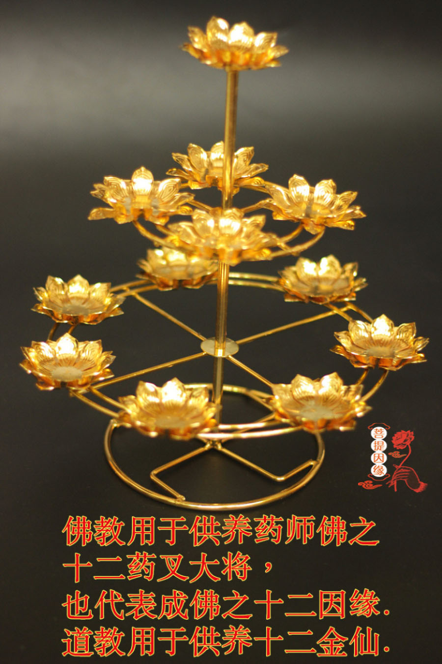 Lotus three-layer 12 ghee lamp holder lamp holder lamp lotus lamp medicine master Buddha twelve medicine fork Buddha