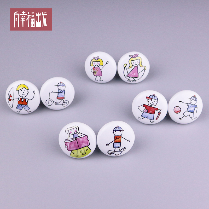 Modern Minimalist Cartoon Children's Room Male Girl Single Hole Ceramic Handle Cute Drawer Wardrobe Shoe Cabinet Bookcase Handle