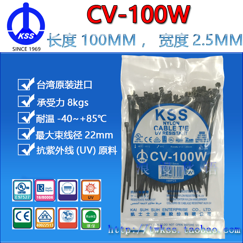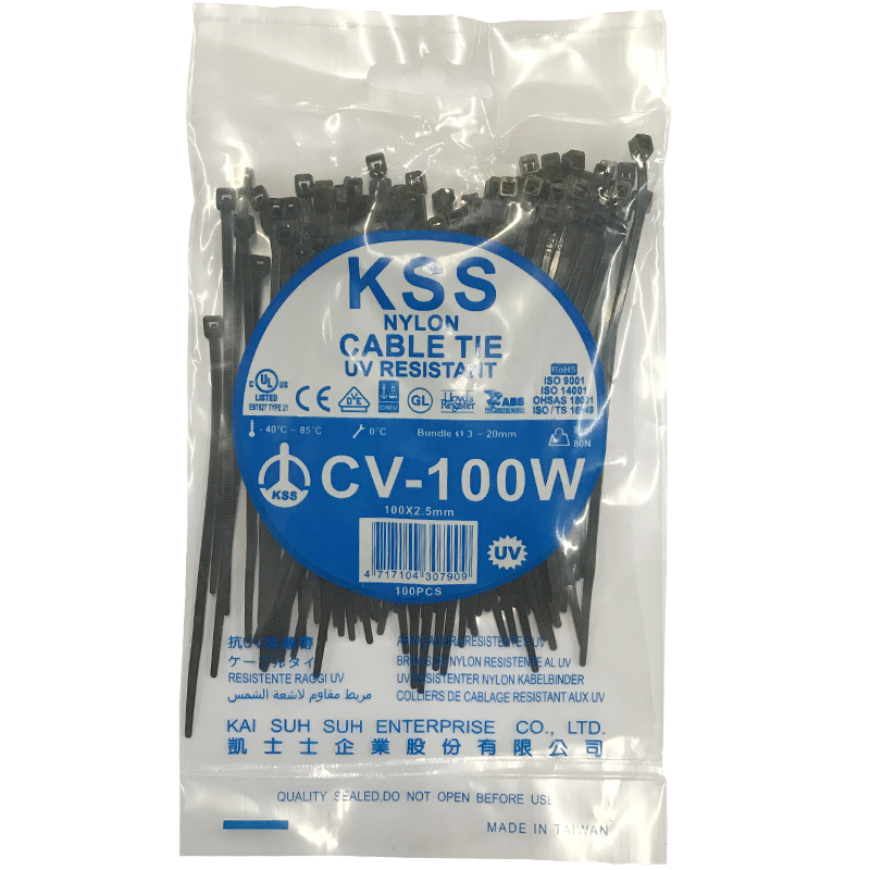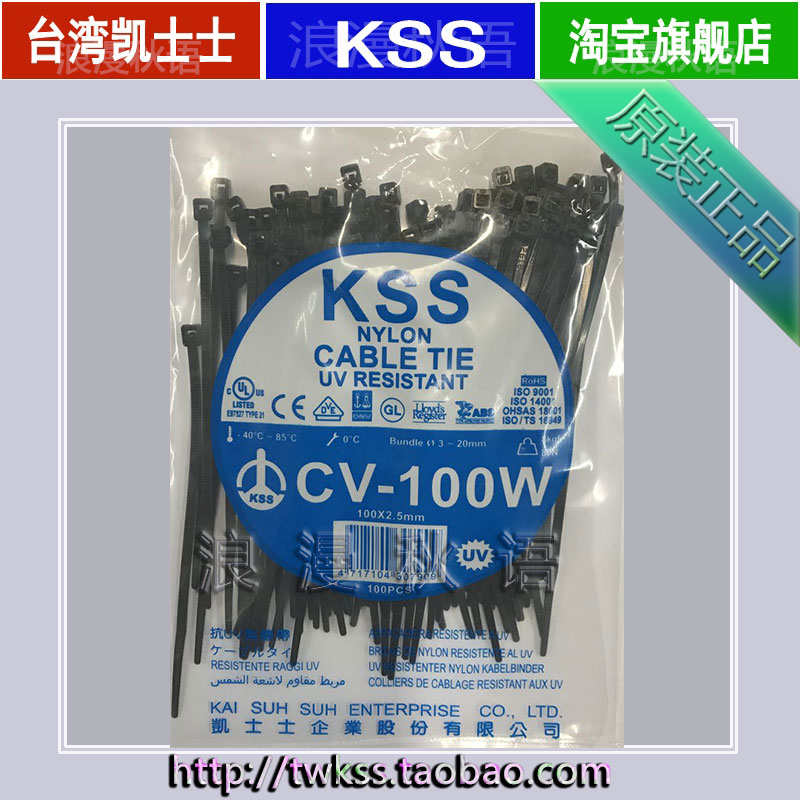 CV-100W KSS Cable Ties Original Taiwan weather-resistant cable ties 2 5mm UV-resistant black Nylon cable Ties 3*100