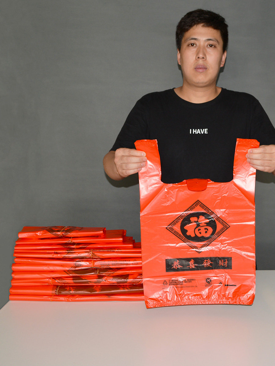Thickened red shopping bag small convenient bag gift bag supermarket shopping packaging with big red portable plastic bag