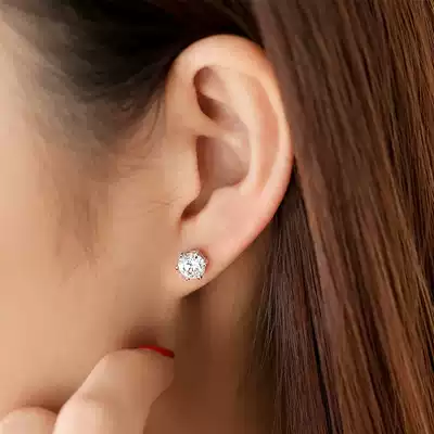 Shangfu sterling silver earrings female simple diamond-proof single diamond earrings exquisite synthetic zircon crystal temperament ear drill earrings