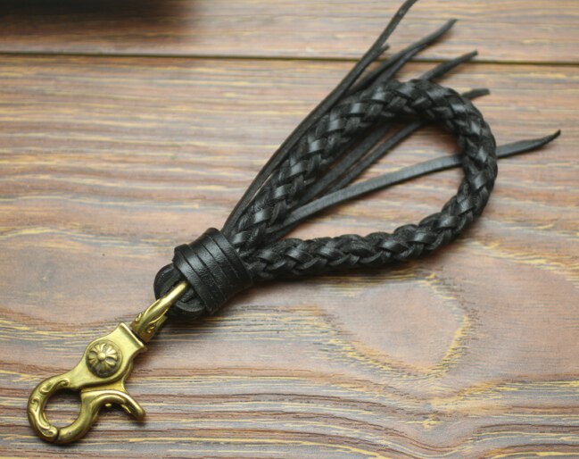 Custom imported vegetable tanned leather 3mm first layer cowhide rope hand-woven 4 strands 8 strands keychain car keychain