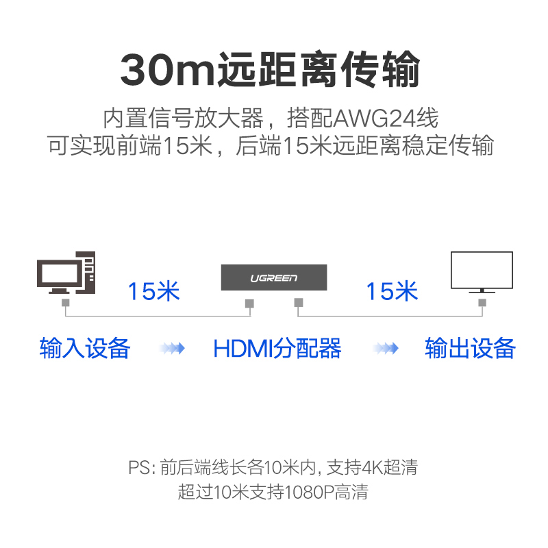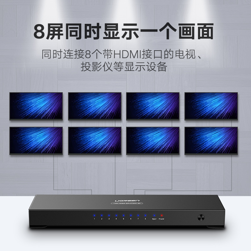 Green Union hdmi splitter 1 in 8 out HD 4k display audio and video laptop projector converter 1 point 8 host notebook screen signal splitter 1 point 8