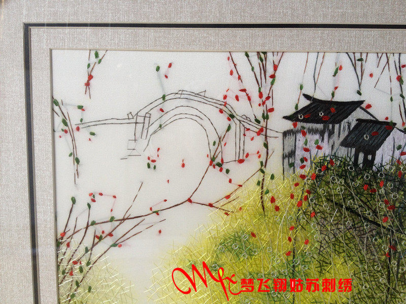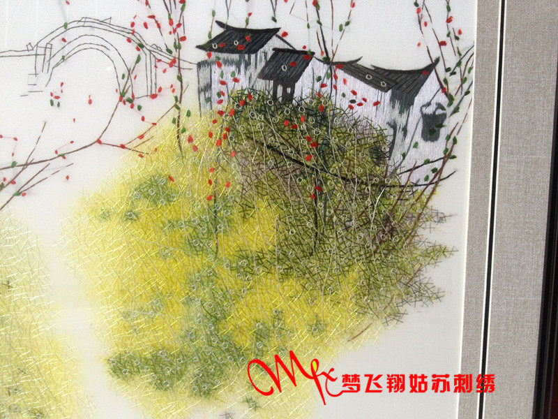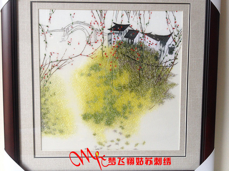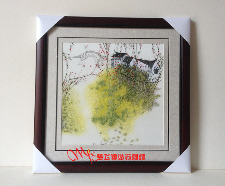 Meng Feixiang handmade Suzhou embroidery finished living room hanging painting four seasons water town bedroom porch study hanging painting embroidery painting