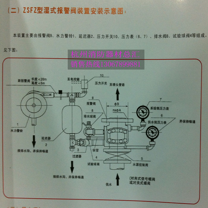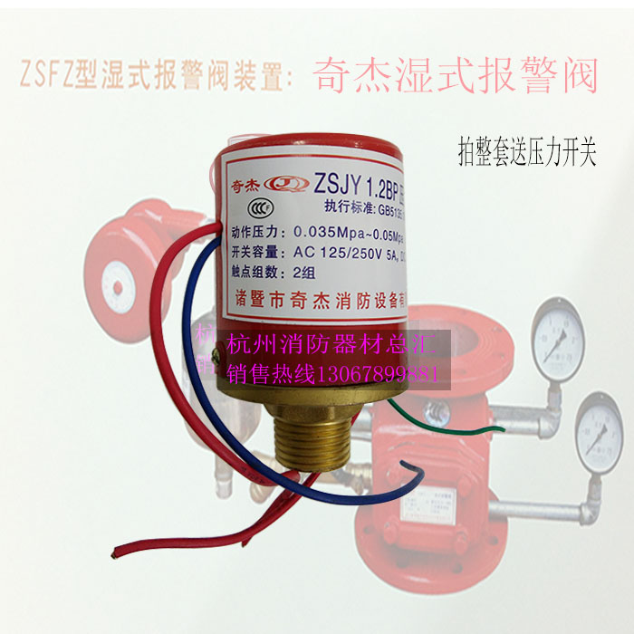 Qijie ZSFZ type wet alarm valve device stainless steel delayer hydraulic alarm bell double contact pressure switch