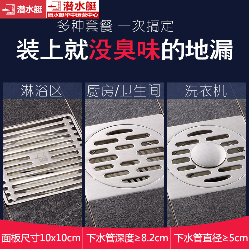 Submarine floor drain package thickened stainless steel floor drain large displacement dressing room shower washing machine deodorant floor drain