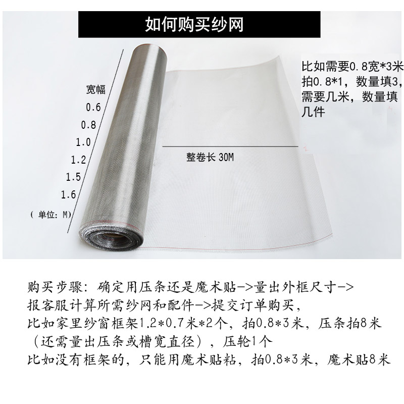 304 stainless steel anti-mosquito screen window mesh Self-installed yarn mesh thickened encrypted sand window household anti-rat cat iron yarn mesh