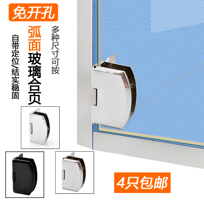 Glass hinge-free perforated glass hinges fixed bilateral sandwich wine cabinet door hinge cabinet door clip 5-8 centimeter square clip