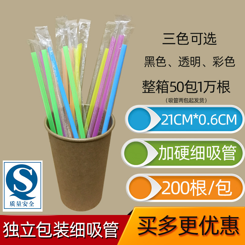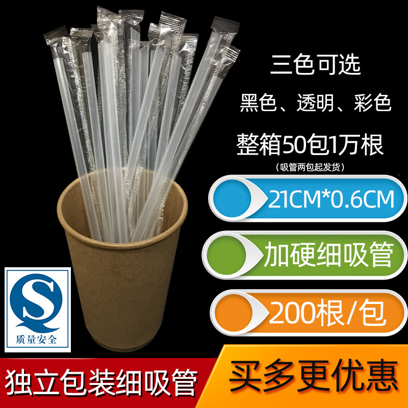 Independent Packaged Milk Tea Coffee Sand Ice Transparent Small Straw Disposable Plastic Juice Black Fine Straw 21cm