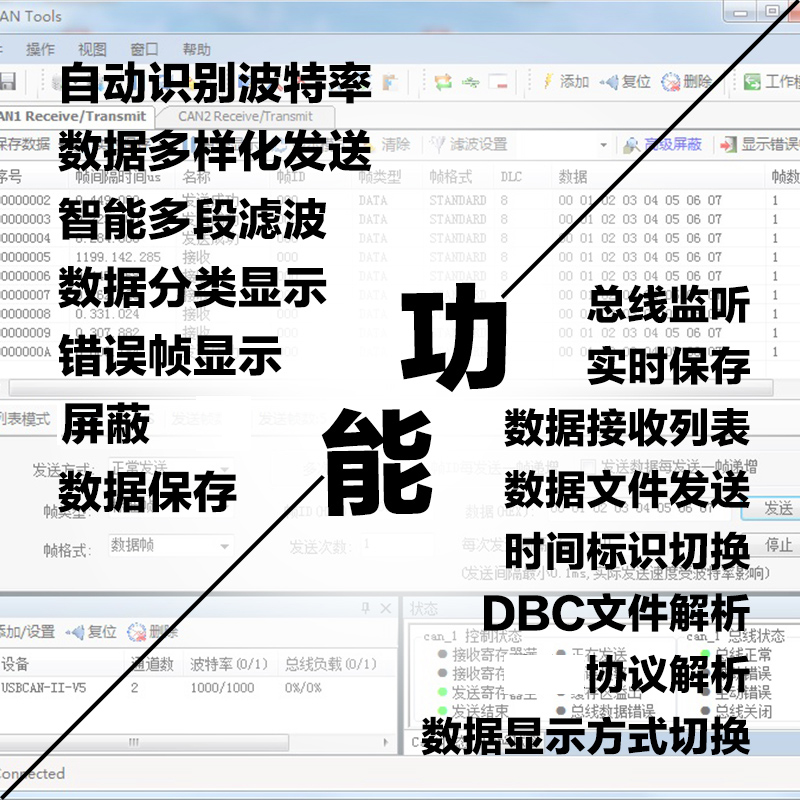 Guangcheng Technology USB-CAN bus analyzer USB to can converter J1939 protocol parsing card zlg