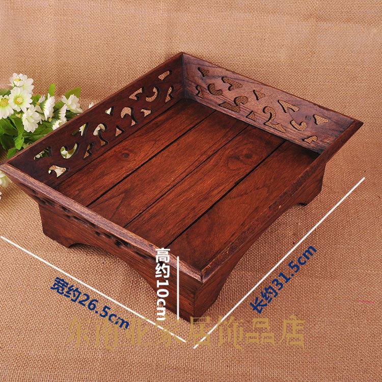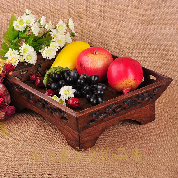 Thailand imported European retro creative fruit plate solid wood carving candy plate fruit basin wooden storage fruit basket