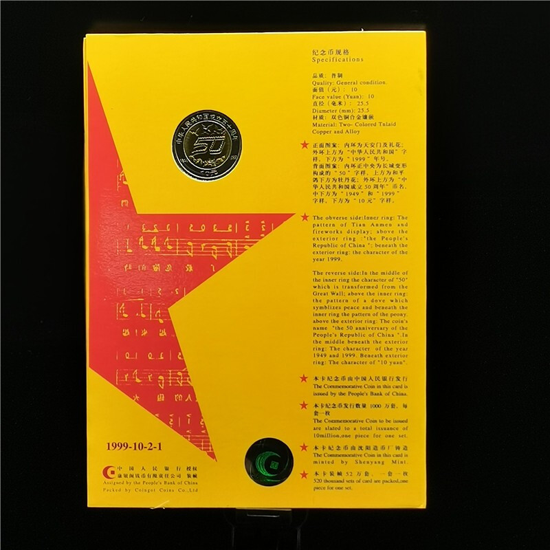 Tianzhongjin 50th Anniversary of the Founding of the People's Republic of China Kangyinge Card Coin 50th Anniversary of the Founding of the People's Republic of China