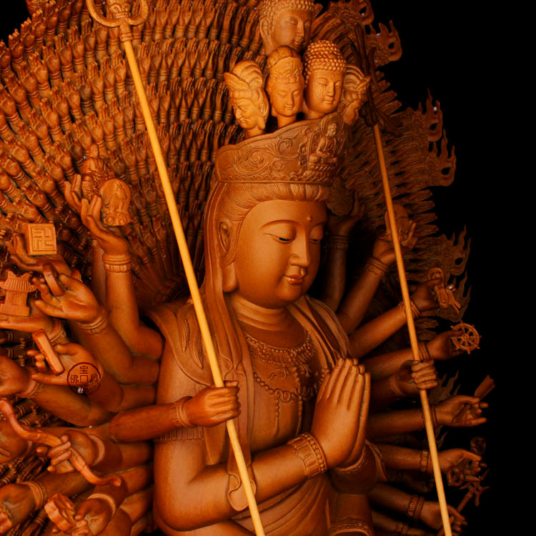 Round pass Buddha with fragrant camphor wood carvings of Guanyin Buddha The home living room for the Buddha pendulum piece pure handmade solid wood Guanyin