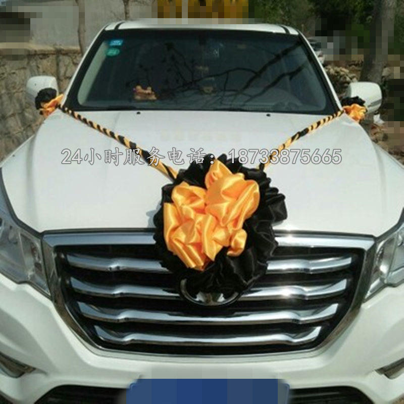 4m Lingtang black flower car flower hand letter satin Lingtang black flower white funeral supplies Lingtang layout big black flower