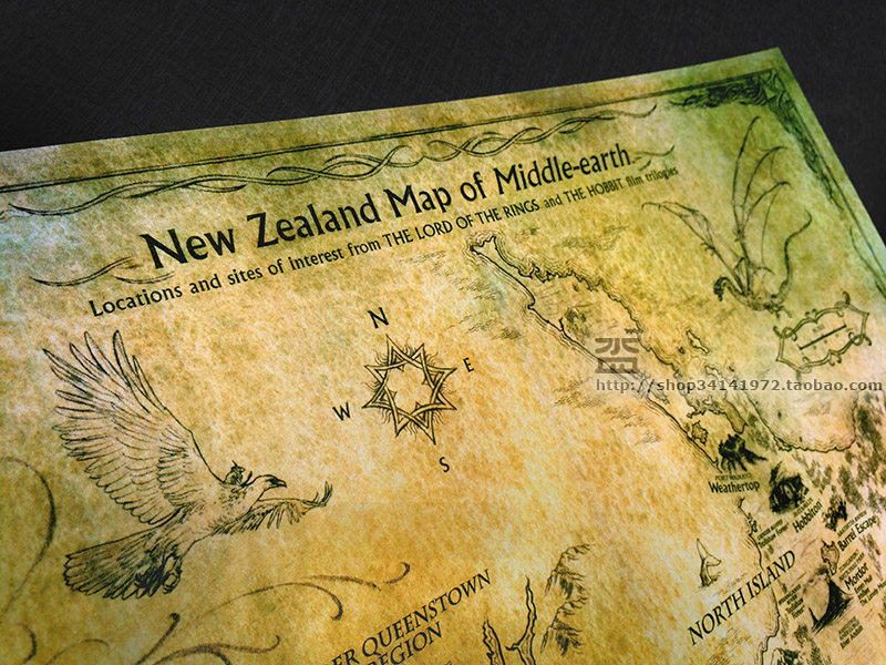 Map of shooting locations around the Lord of the Rings of the Hobbit -2 Buy 5 Get 1 Middle-earth Poster