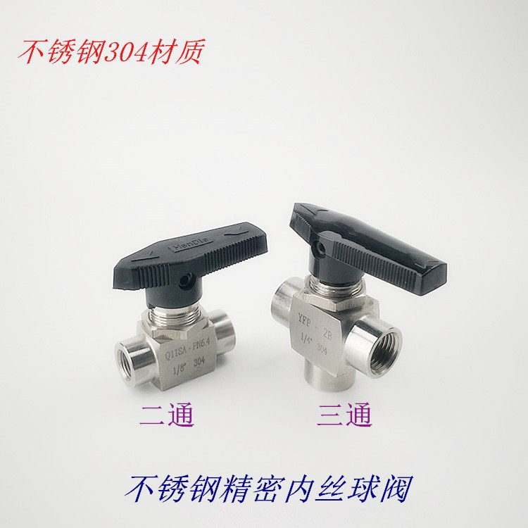 Stainless steel 304 material inner thread instrument precision two - way three - way ball valve