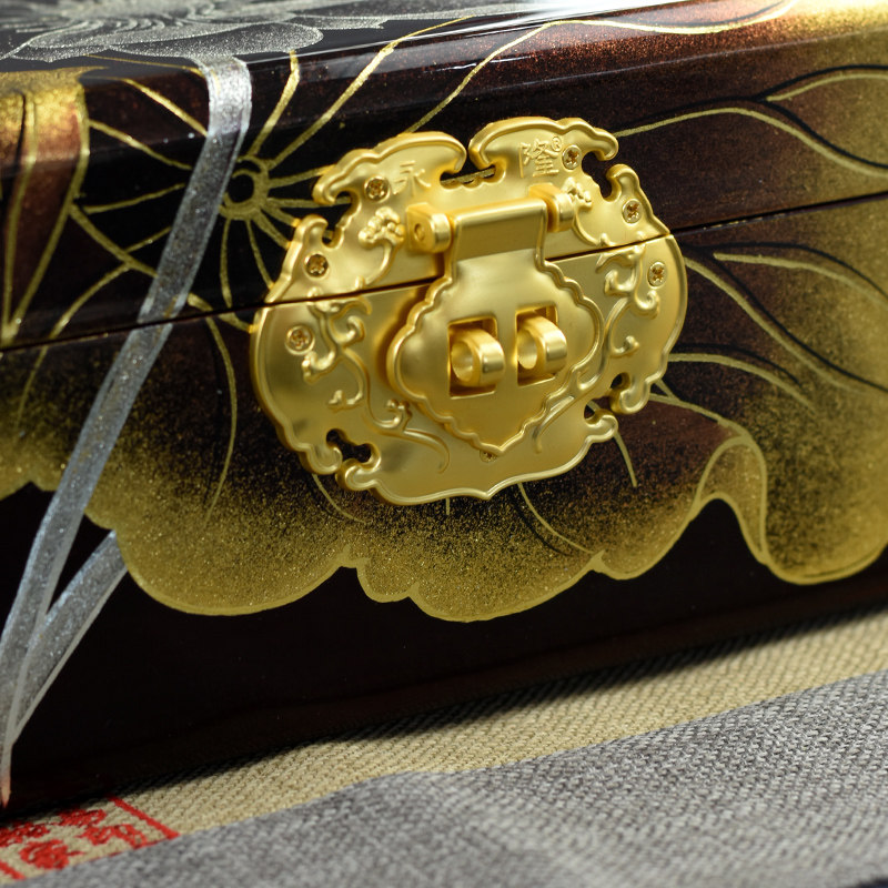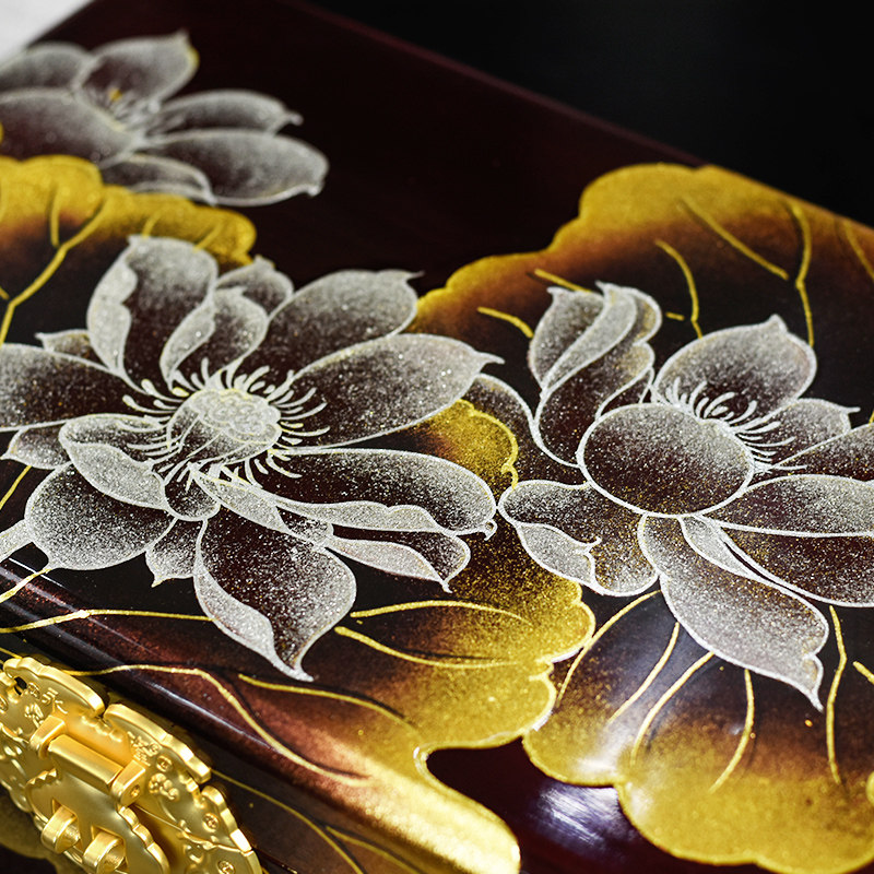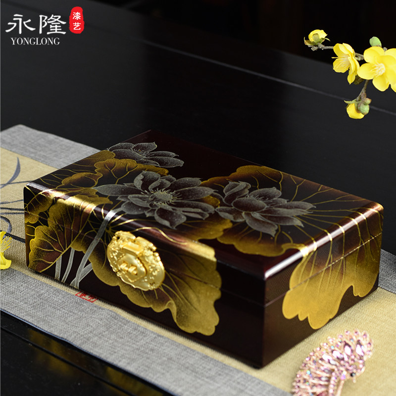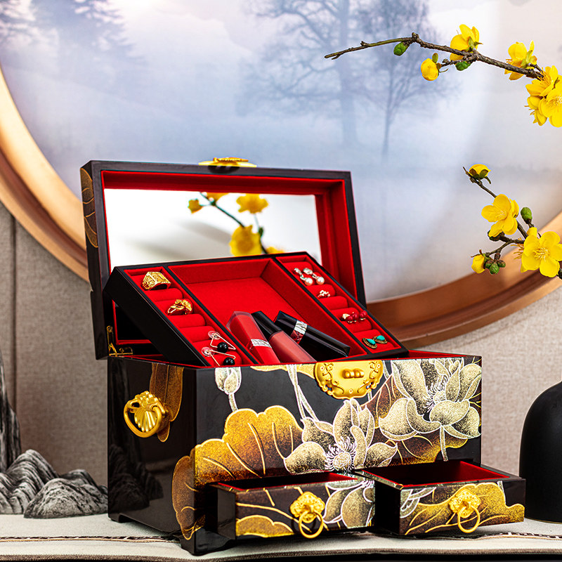 Pingyao polished lacquerware jewelry box wooden jewelry storage box anti-oxidation Chinese three-gold jewelry large capacity multi-layer
