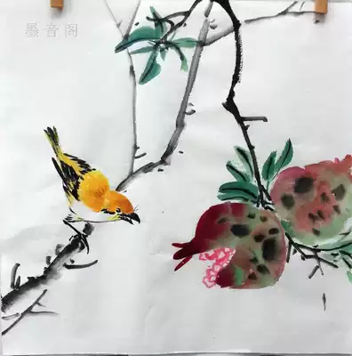 Boutique manuscript bucket flower and bird Chinese painting Kingfisher lotus flower handmade home decoration sketch painting