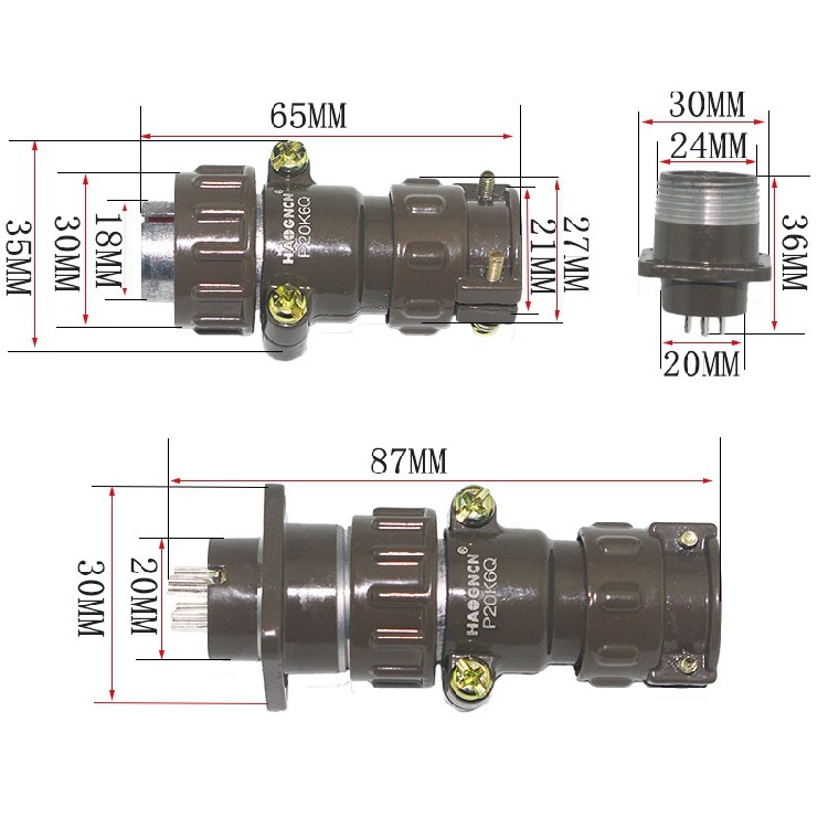 Air plug round connector P20-2 Core 3 Core 4 Core 5 Core 7 Core Cable Joint 20MM