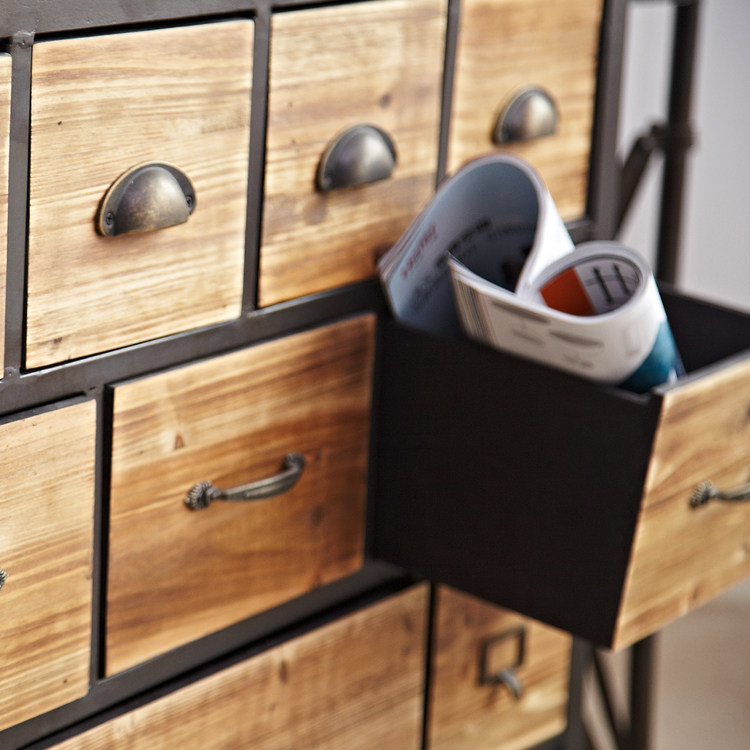 Eurostyle loft furniture 12 IRON WOOD FOUR WHEELS CABINET CONTAINING CABINET AMERICAN COUNTRYSIDE FOR OLD RETRO CRAFTS STYLE