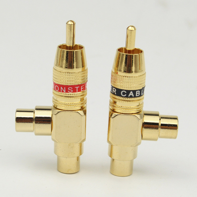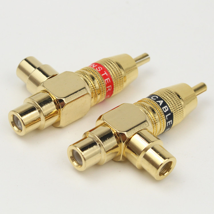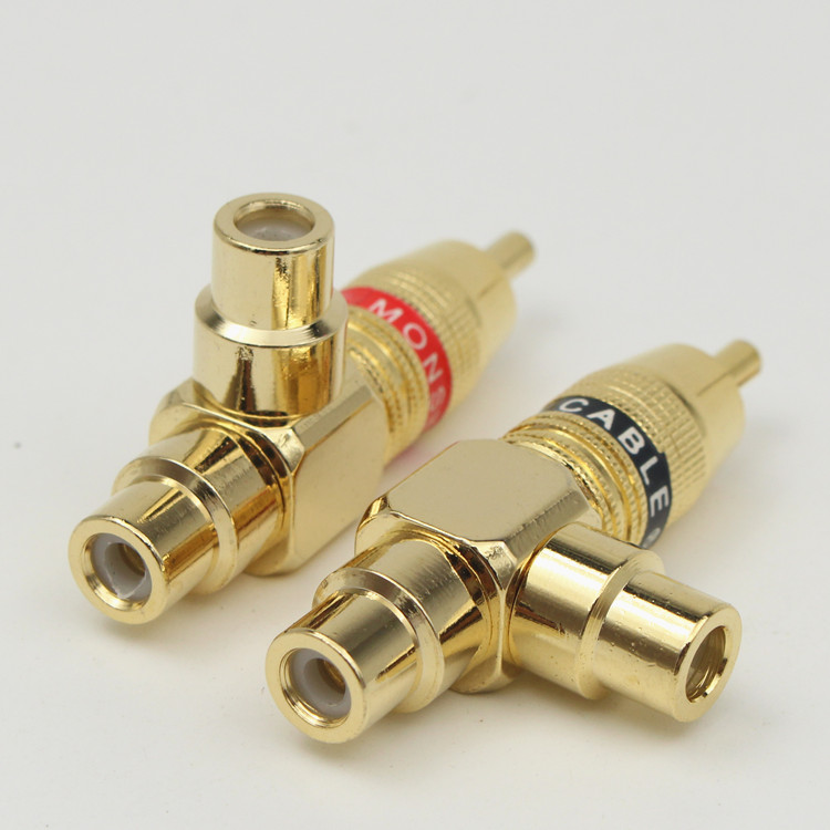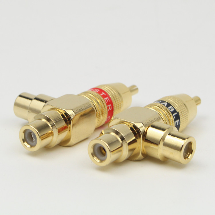 One male and two mother 10% RCA lotus plug sockets transfer tee terminals
