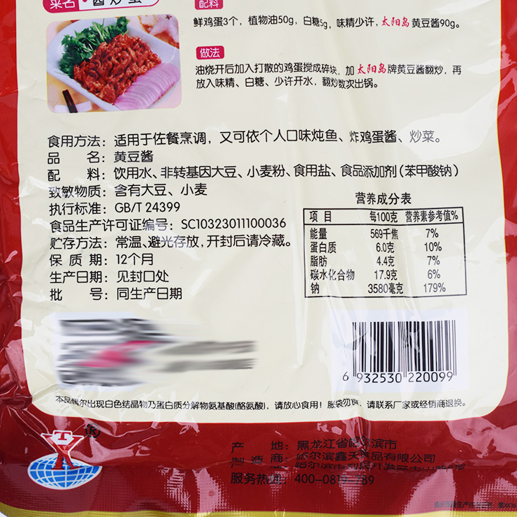 Sun Island Soybean Sauce 600g Bean Snapping Sauce Harbin Cooked Sauce Dip Saucepan stew Multi-Province