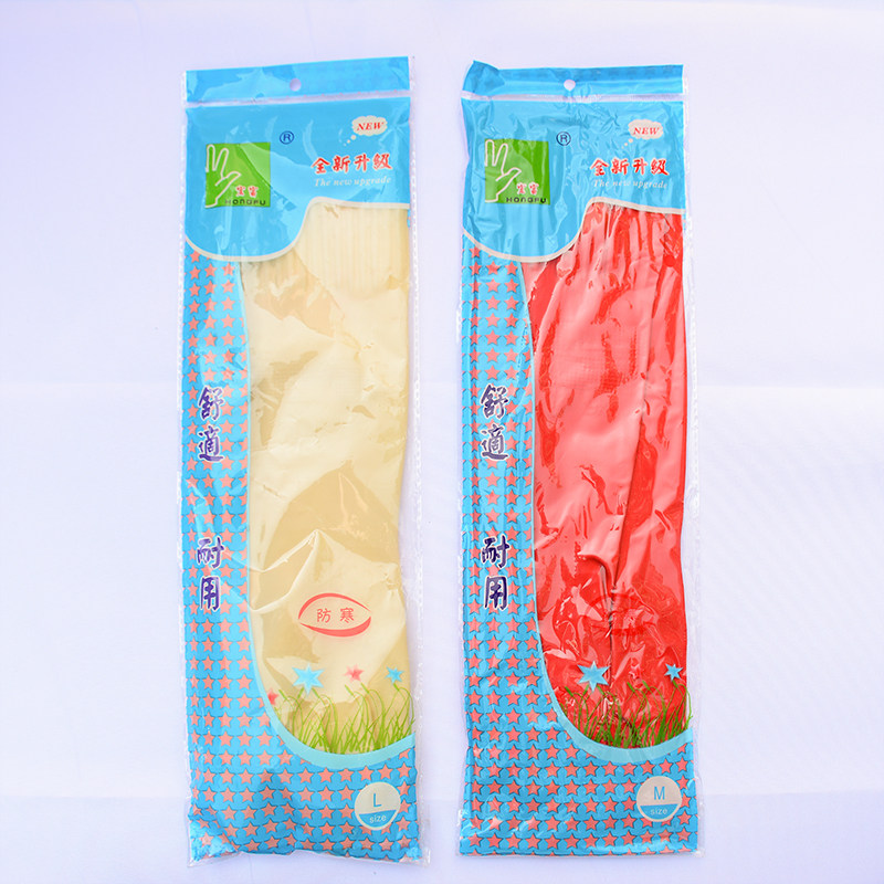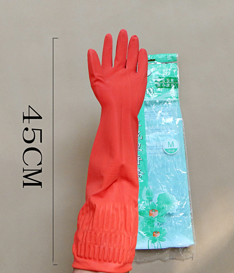 Hongfu brand extended and thickened 45CM latex gloves Waterproof dishwashing laundry rubber 39cm acid and alkali gloves
