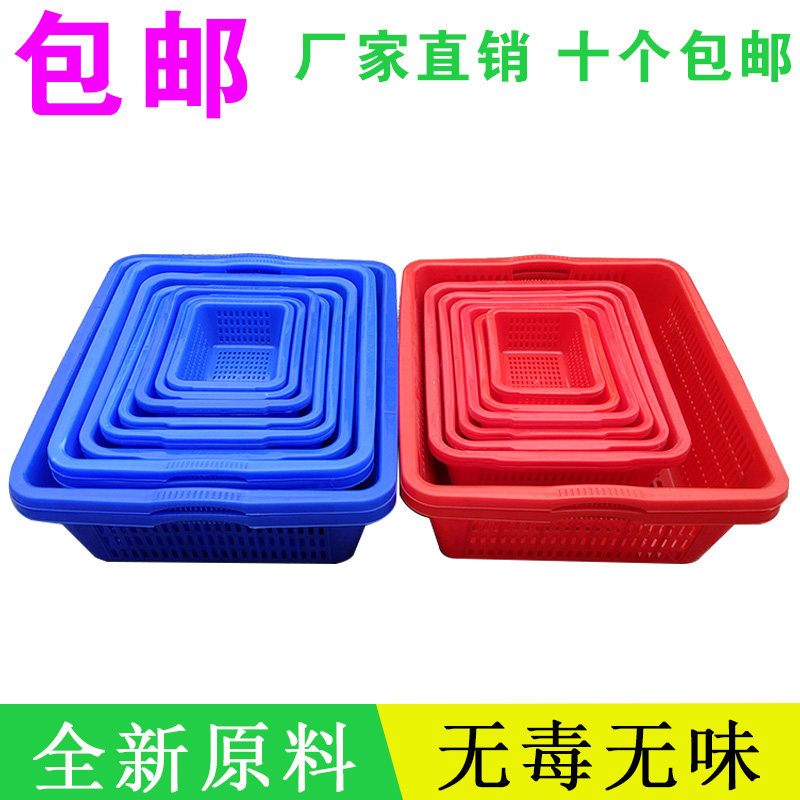 Hot selling plastic square sieve plastic basket small vegetable basket fruit leaking large plastic basket rectangular storage storage blue