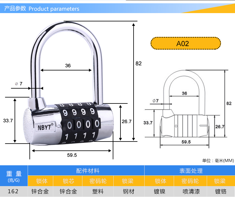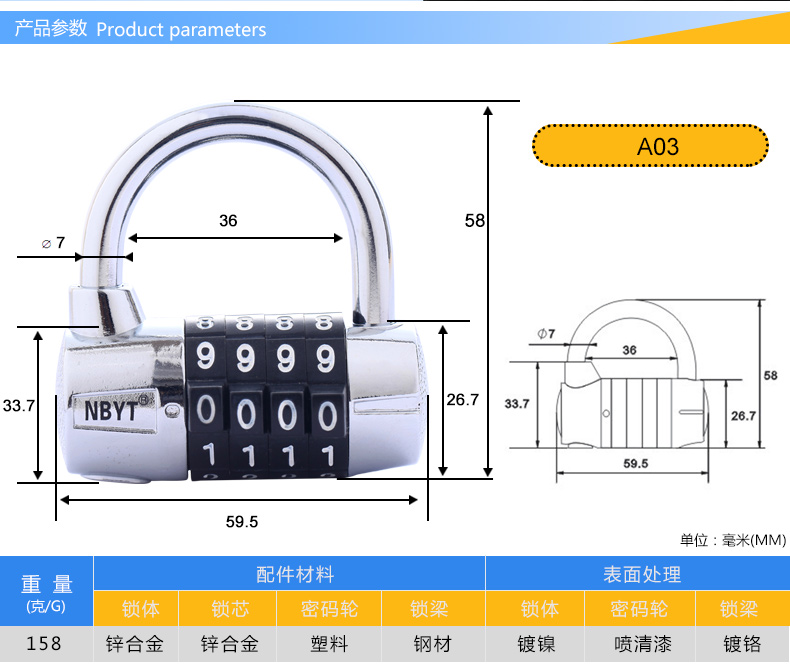 NBYT Gym Door Toolbox Locker Lock Zinc Alloy Long Beam Combination Lock Padlock A01