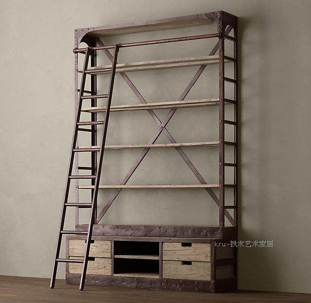 LOFT style French Industrial Country Five - floor four staircase iron - frame bookcase Retro - shelf shelves