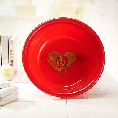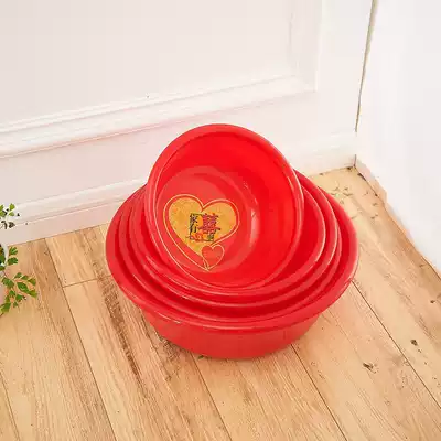 Family happy red round basin wedding plastic washbasin increased small and medium size laundry basin red Double Happy wedding Basin