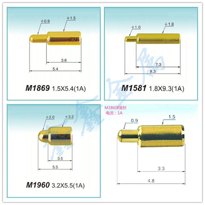 pogopin large current spring needle charging test pcb patch plug-in with antenna thimble 2 0 * 6 5