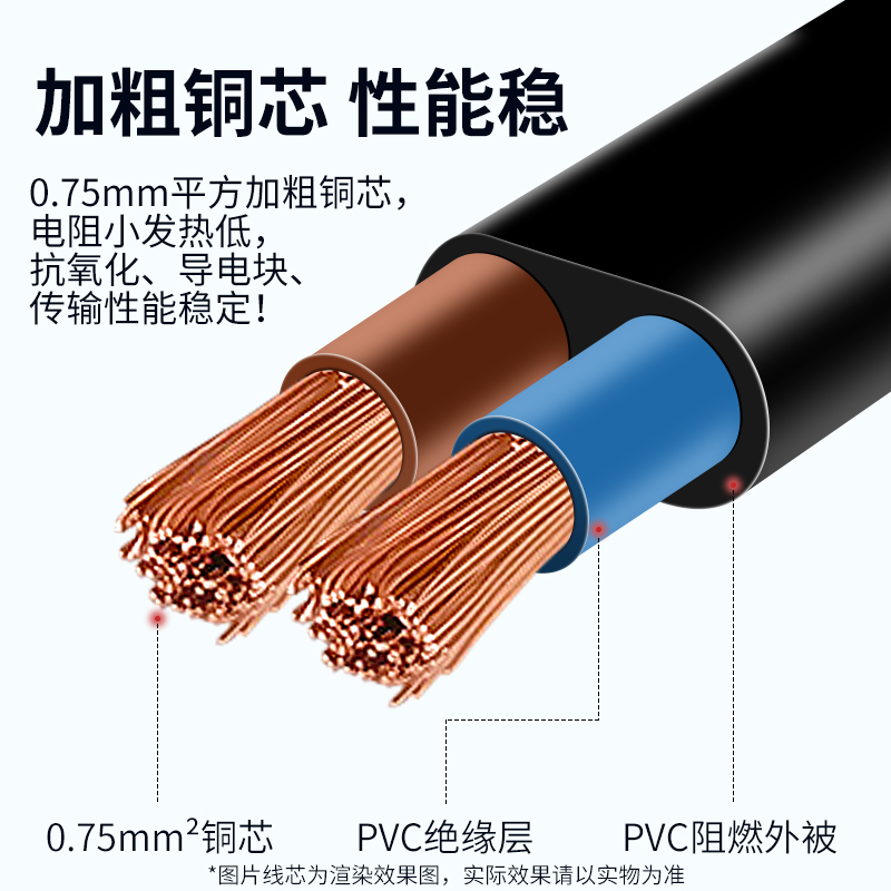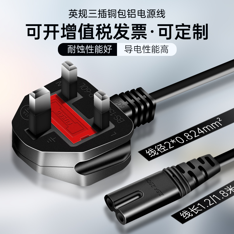 Black Inregularity 8 word tail power cord 1 8 m BS certified 0 75 bronze English gauge 8 words tail 1 2 m