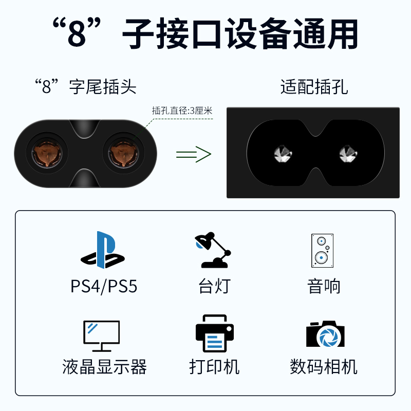Yinggui 8 word tail power cord computer screen connecting wire two holes with insurance tube print meter machine TV power cord