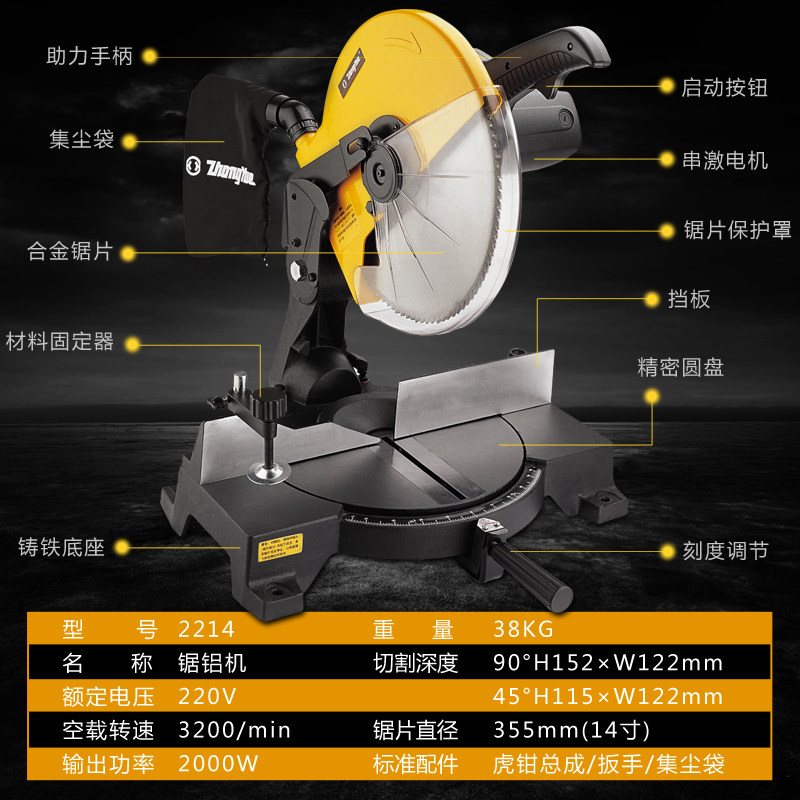 Medium-Cantonese-medium aluminum machine J1X-YZ-350 serial excited inch inch cut saw 2214 aluminum wood cutting machine
