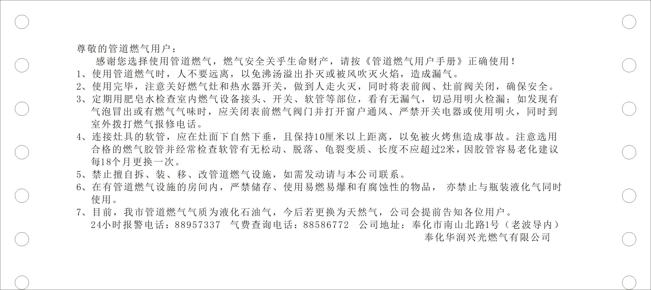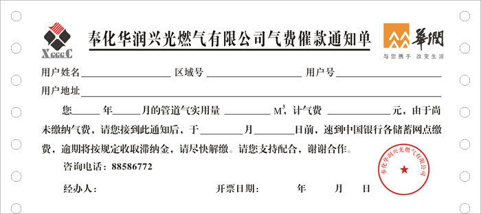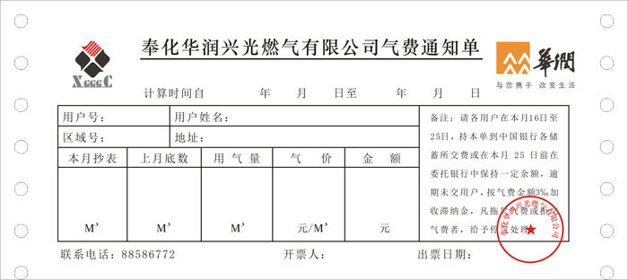 White paper with holes for custom water bills, electricity bills, gas bills, collection receipts, reminder notices, printing custom-made copies