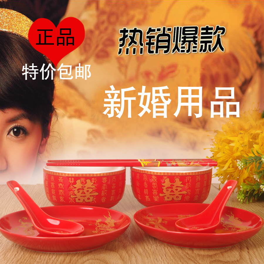 100 Happy Wedding Ceramics Dragon Phoenix Bowl Wedding Celebration Happy Bowl with Festive Chopsticks TEA CUP SUIT WEDDING GIFT BOWLS CHOPSTICKS