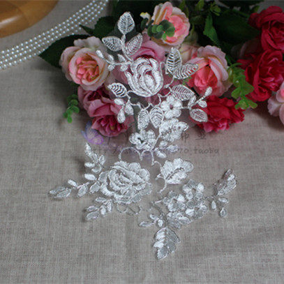 Off-white DIY handmade accessories exquisite car bone silver thread lace lace to flower applique cloth stickers low price