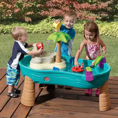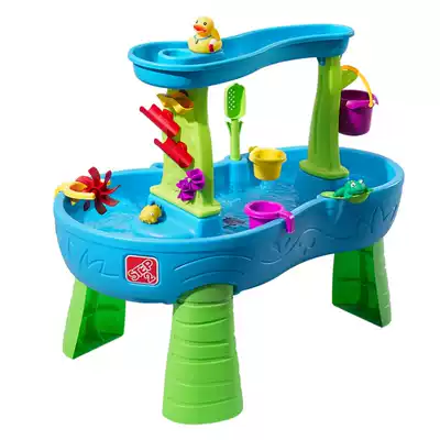 Waterfall slide water play table Tropical island little yellow duck water play table Double pool water play table with umbrella Korean sand table Small Teksha pool Shell Lego pirate ship water play table Shell Lego sand water snooker ball adventure water play table Small Thai