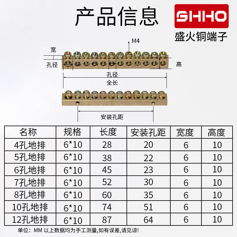 Single Row Ground Copper Row Ground Row Wiring Terminals 6 * 10 Grounding Wire Platoon 4 6 8 10 15 Holes Distribution Box Wiring Row