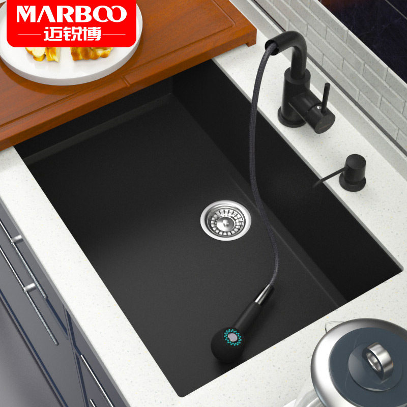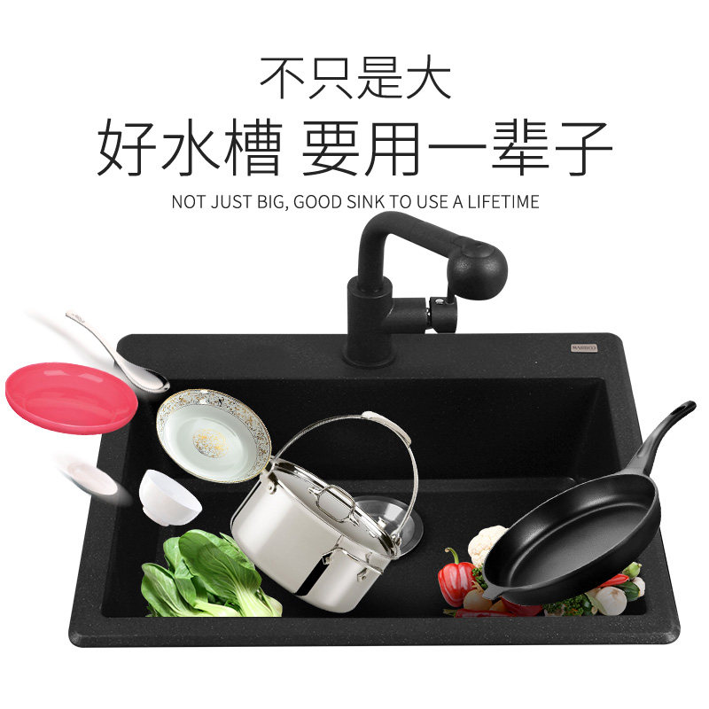 German Mai Sharp quartz stone sink grey stage tub Dishwashing Tank Kitchen Granite Wash Basin Single Sink 570