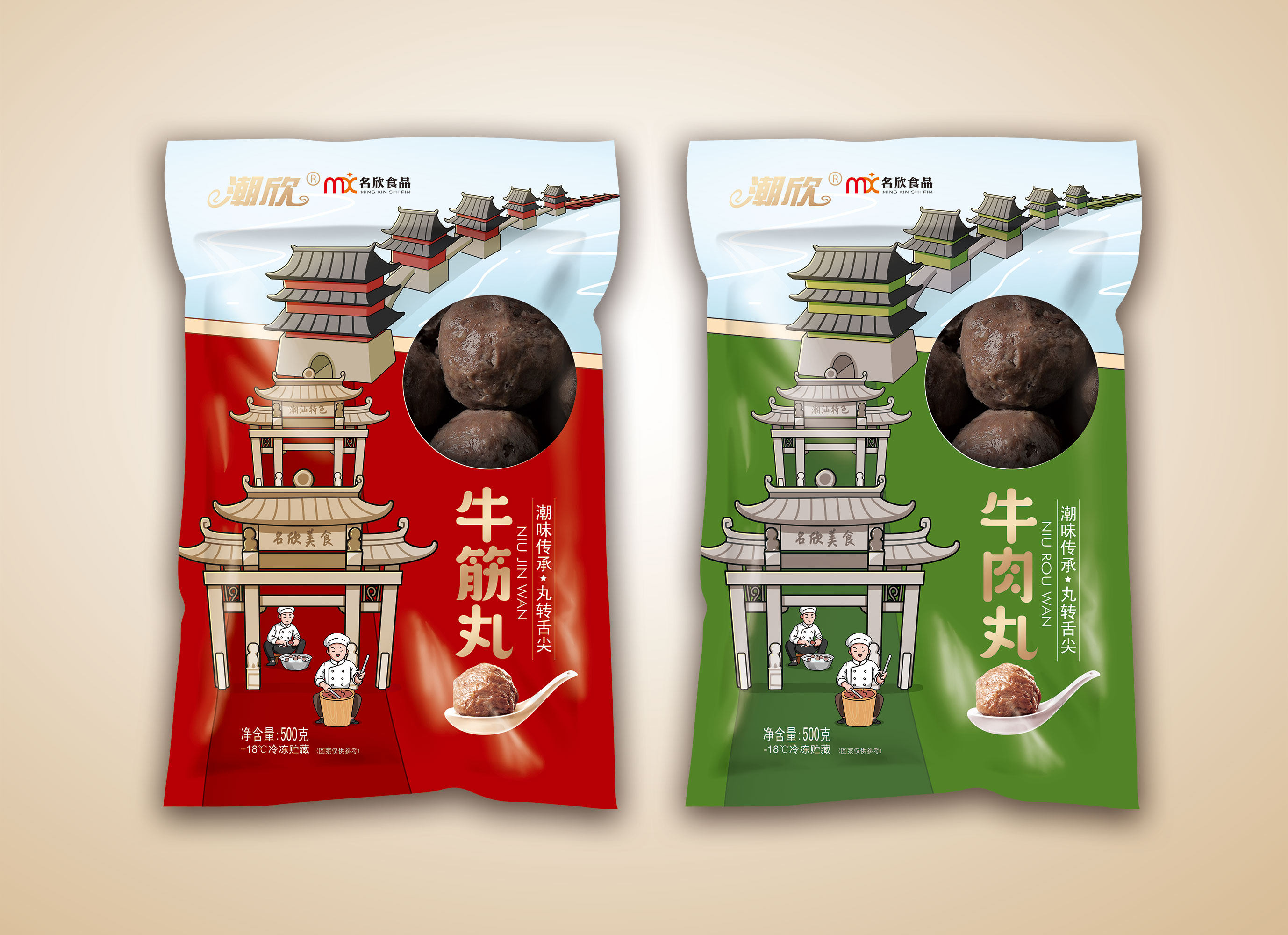 (Mingxin Food)Chaoshan hand-beaten beef balls beef tendon balls each one pound hot pot material Chaozhou Shantou specialty